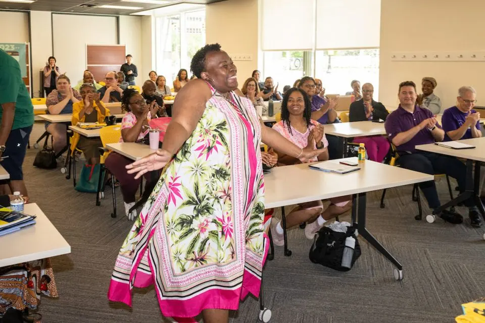 LaCresha, who works at a Veterans Administration call center, said she wants to be more of an advocate for the veterans. “I want to use my words better. That’s what I hope this program will do for me.”